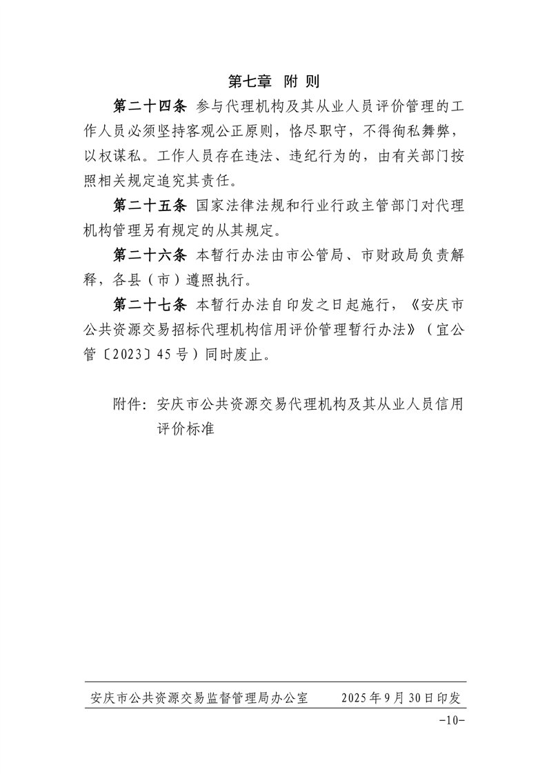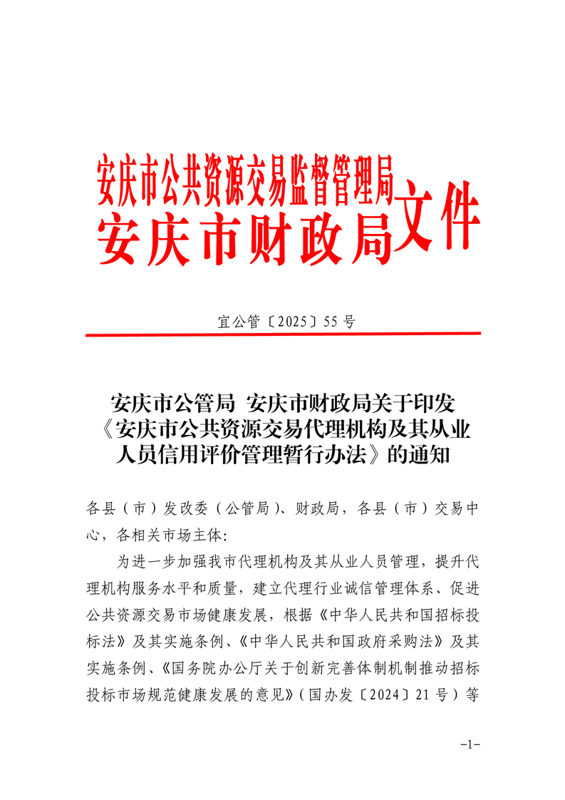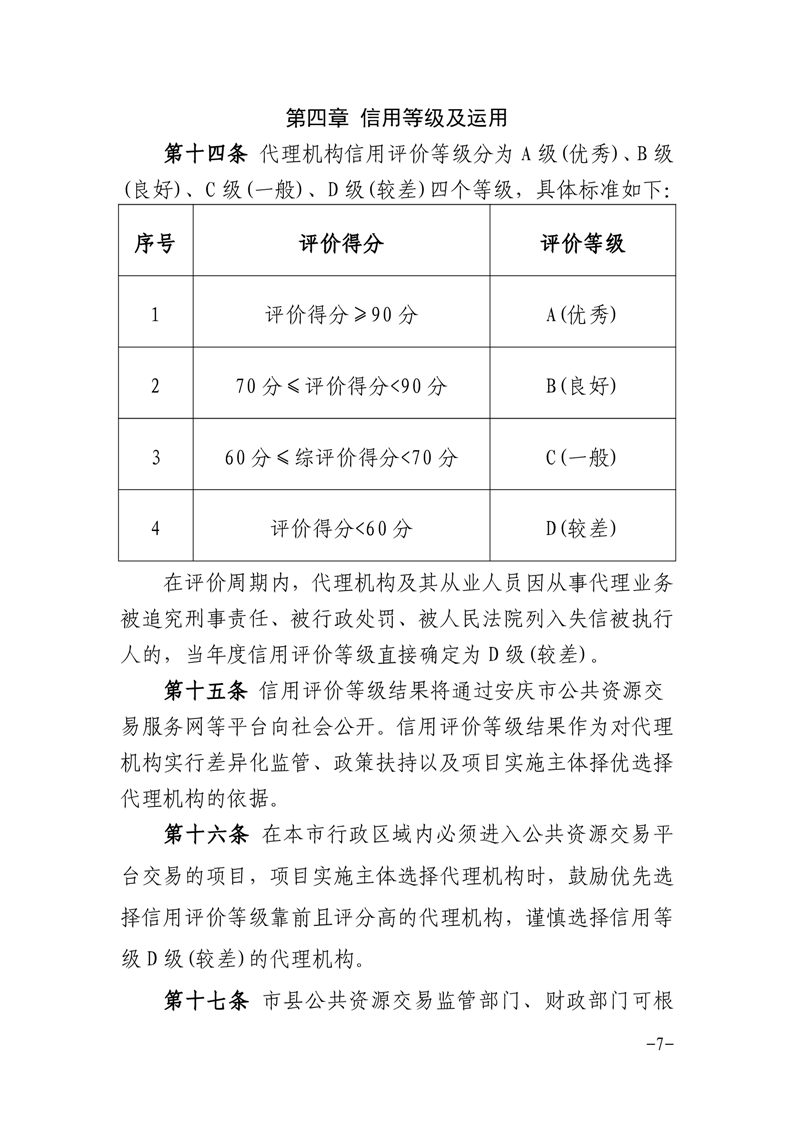 安慶市公管局 安慶市財政局關(guān)于印發(fā)《安慶市公共資源交易代理機(jī)構(gòu)及其從業(yè)人員信用評價管理暫行辦法》的通知