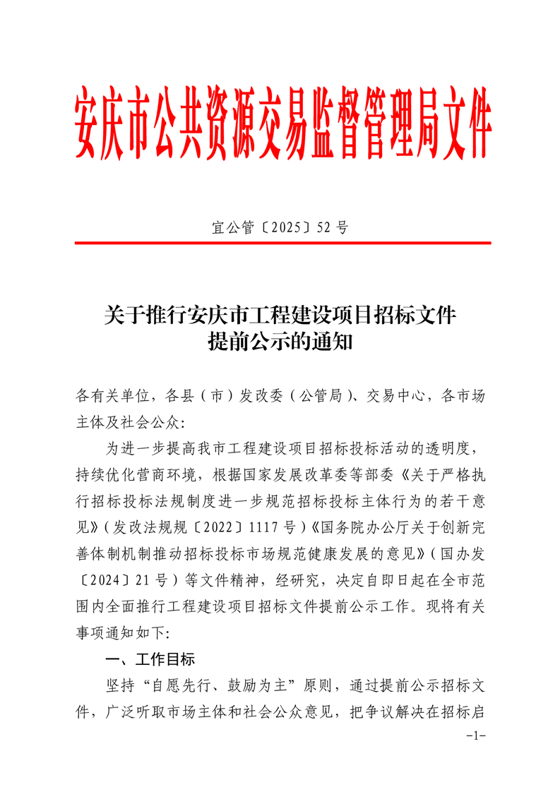 關(guān)于推行安慶市工程建設(shè)項(xiàng)目招標(biāo)文件提前公示的通知
