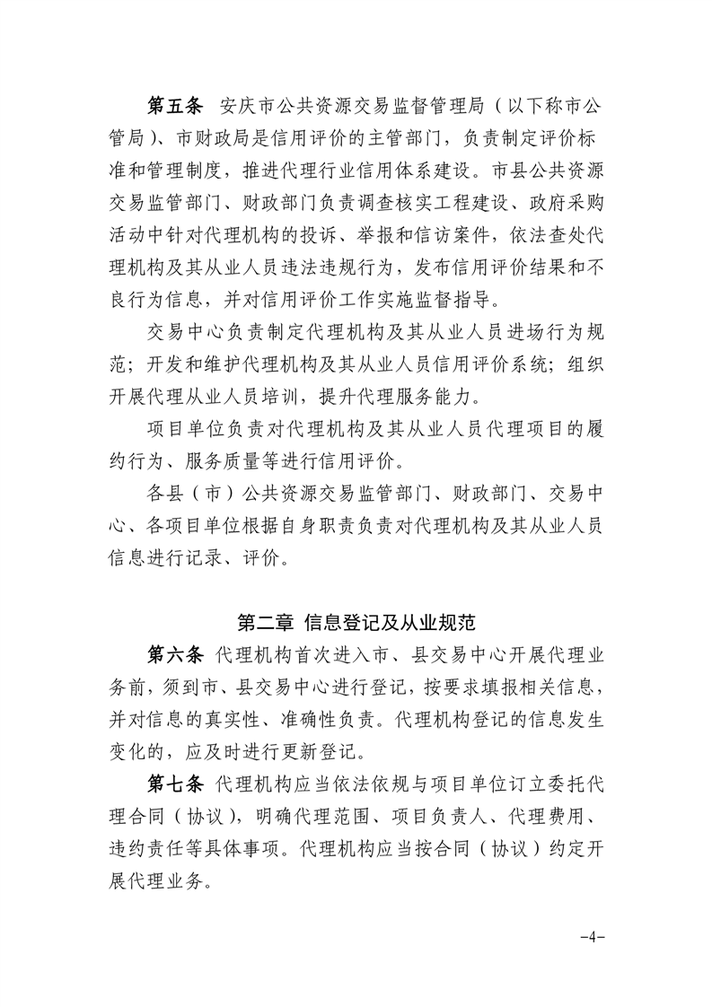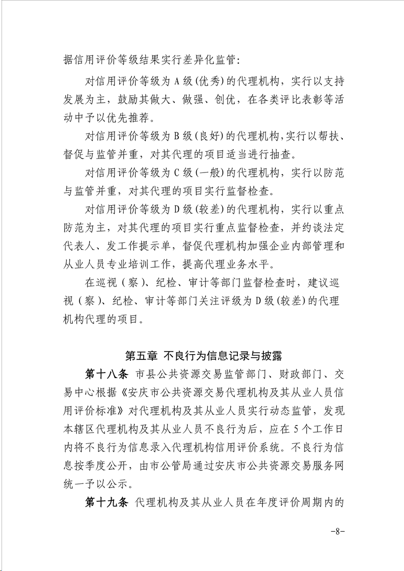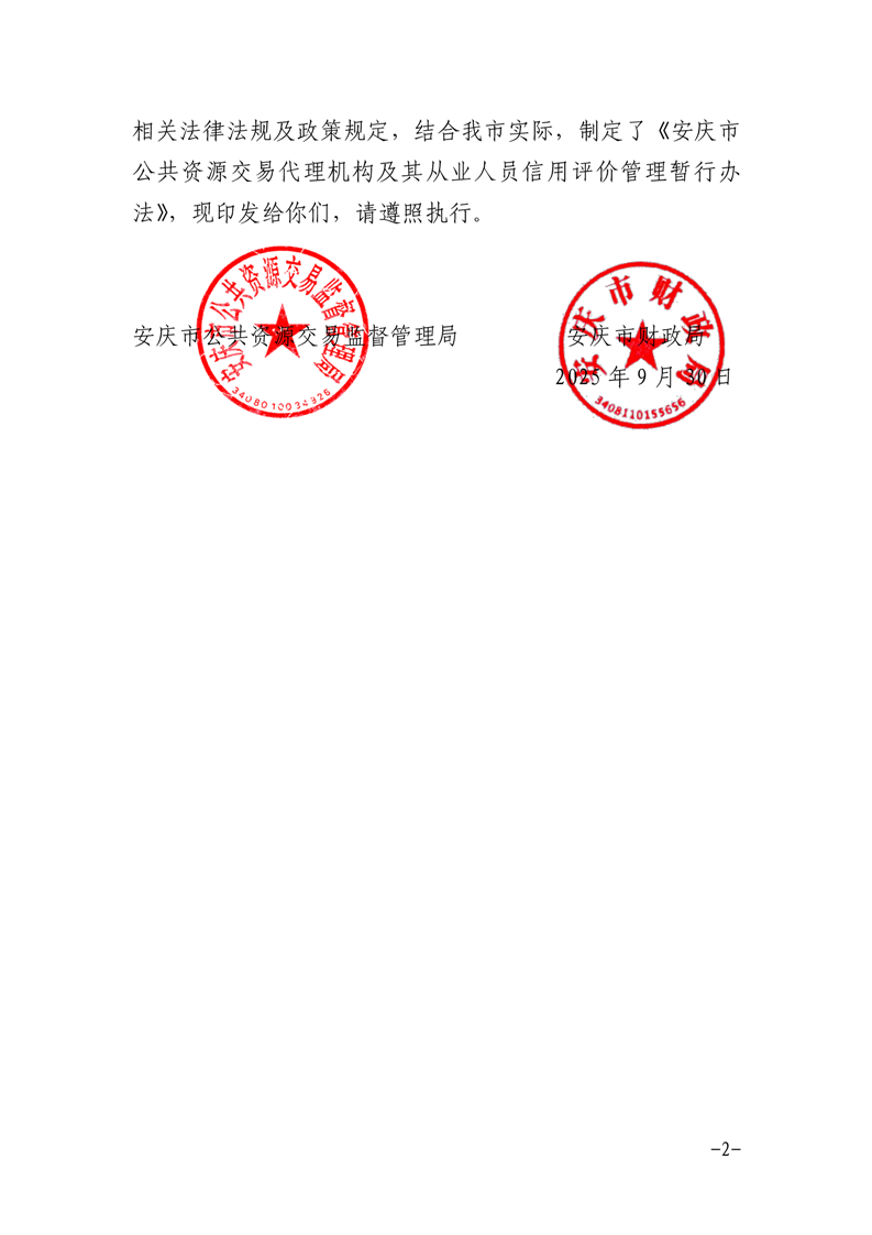 安慶市公管局 安慶市財政局關(guān)于印發(fā)《安慶市公共資源交易代理機構(gòu)及其從業(yè)人員信用評價管理暫行辦法》的通知