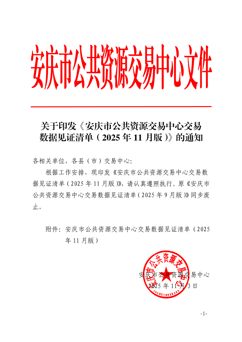 關(guān)于印發(fā)《安慶市公共資源交易中心交易數(shù)據(jù)見證清單(2025年11月版)》的通知